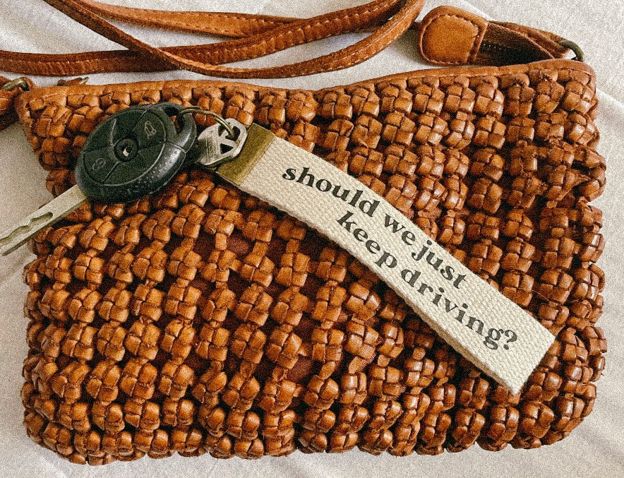 Should we just keep driving? Absolutely! Turn up the music and hit the road with this keychain on your car keys.